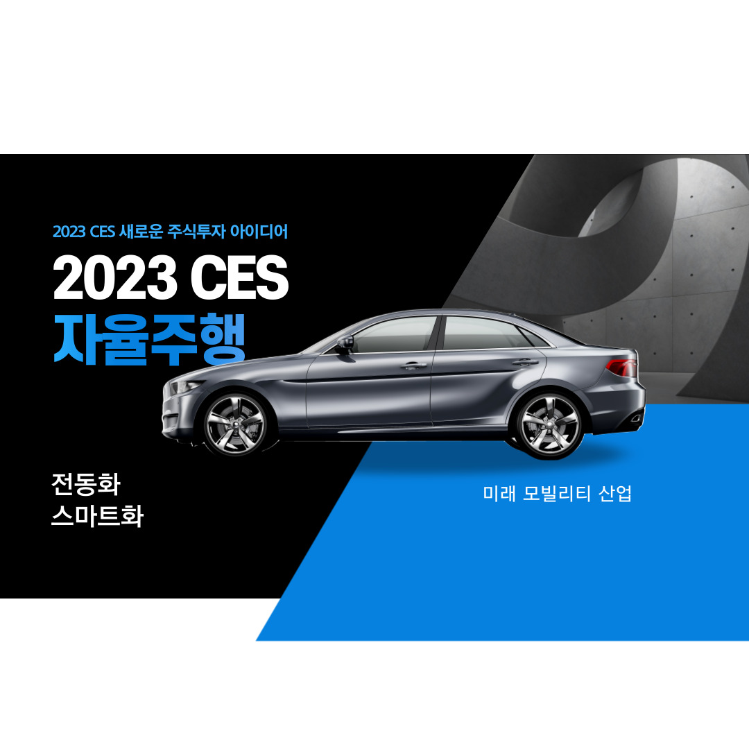2023 CES를 주관하는 소비자기술협회(CTA)는 핵심 화두를 모빌리티를 뽑았는데 300여 곳이 넘는 모빌리티 기업이 다양한 신기술을 보이는 만큼 관련기업을 찾아본다면 좋은 투자아이디어가 될 수 있습니다.